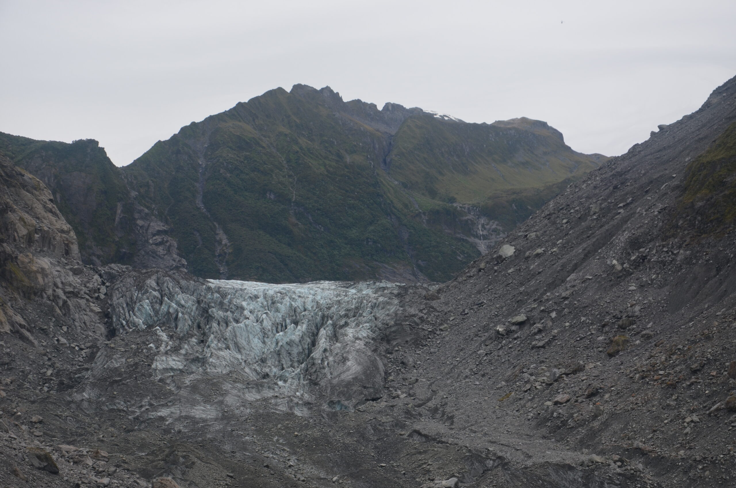 Puis nous prenons la direction du sud par la côte ouest. Nous passons par le Lake Rotoiti, nous longeons la Gorge River avec une eau turquoise magnifique. Petit arrêt au Cape Foulwind pour admirer les phoques qui se languissent au soleil et se rafraichissent dans l’eau pour notre plus grand bonheur. On the road, il y a mille et une choses à voir : les Pancakes Rocks, la rivière d’Hokitika, des lacs. Nous arrivons avec la pluie à Franz Josef. Et en seulement 40 minutes de marche pour chacun, nous avons pu voir de près les glaciers Fox et Franz Josef. Ils se jettent tous deux à environ 300m d’altitude. Le temps ne nous a pas permis de les voir distinctement mais c’est déjà impressionnant de les voir aussi facilement.