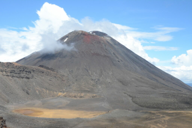 Nous passons 3 jours dans le centre de l’île, malheureusement le soleil nous aura lâché mais ce n’est pas ça qui nous a empêché d’en voir plein les yeux. Nous passons par Rotorua, région très volcanique. L’occasion de visiter le parc géothermique Wai-O-Tapu et de voir des réactions physiques assez étonnantes. Plus au sud se trouve le lac Taupo et la rivière Waikato dont la couleur bleue est sublime. On a même eu le droit à un réveil dans une source d’eau chaude – brulante – en plein milieu naturel. Et pour continuer à suer, petite balade en VTT pour profiter des lieux et voir les Huka Falls. Les journées sont calmes, les soirées pluvieuses. Pas facile de manger à 7 dans un van pour 4 mais on devient les rois du tétris. Au sud de Taupo se trouve le Tongariro National Park – 797 km² et trois volcans en activité. Passage oblige donc par la Tongariro Alpine Crossing, une marche de 7h. Et comme on ne veut pas faire comme tout le monde, on la fera en sens inverse – histoire de dire Hello à tous les gens qu’on croise (et croyez-moi il y en a eu du monde !). La montée se fait dans le brouillard et la pluie mais arrivé sur le plateau tout se dégage ! Et là on découvre un monde lunaire, avec des lacs bleus, verts émeraude qui contrastent avec les pierres orange. On finira même par apercevoir les sommets de deux volcans, le Tongariro et le Ngauruhoe.
